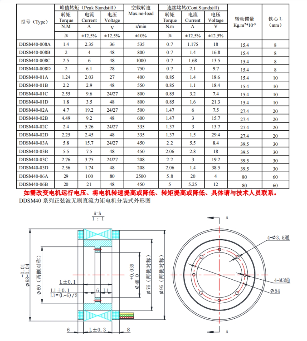 DDSM40系列無(wú)刷直流力矩電機(jī)