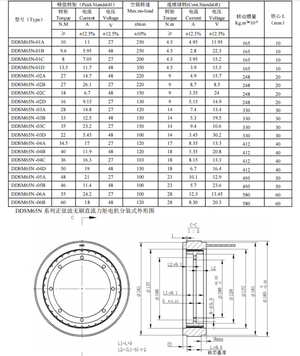 | DDSM65N系列無刷直流力矩電機 |